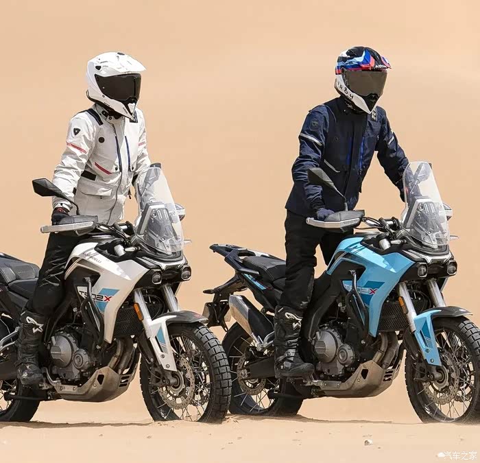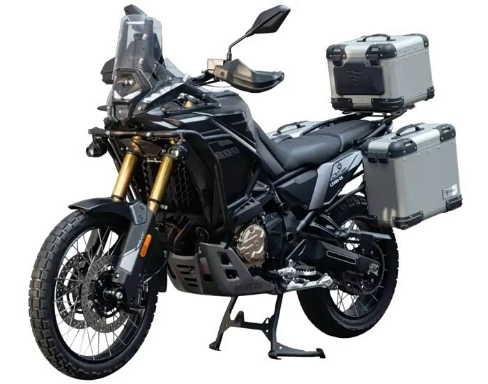 配置方面DS800 Rally也有非常硬派的规格,其中减震上搭载KYB倒立式前减震和多连杆后避震,前后均支持预载和阻尼的调节功能。刹车上则搭载日清前四活塞和后双活塞卡钳,标配双通道ABS和TCS牵引力控制系统。前21后18寸的真空辐条轮毂搭配了倍耐力Scorpion Rally Str全地形胎,加上220mm 离地间隙也能带来非常出色的通过性。DS800 Rally还配备了24升容量的滚塑油箱,整备质量为213KG,加入铝合金三箱后为248KG,座椅高度则为850mm。