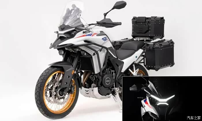 如果你嫌T352X排量不够用,那么T502X或许会更符合你的要求。外观上这台车有着非常明显且现代的风格,分体式的灯具也成为它标志性的设计特点。动力上这台T502X搭载一台来自高金动力的直列双缸水冷引擎,实际排量486cc,最大功率35kW/8,500rpm,最大扭矩43Nm/6,750rpm,标配滑动离合器。这台引擎相信大家已经非常熟悉,不论在动力还是稳定性上都有稳定的表现。基础配置上与T352X并没有相差太大,但是在刹车、减震上均带来了更高规格的表现,前轮也升级为双刹车碟盘及前后西户卡钳等。按照MBP以往任何一款车型的定价来分析,这台T502X在定价上应该也不会让大家失望。