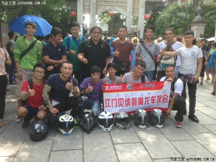本人患了严重的惰性,哈哈,所以好久没更新了,不过一直在回复能帮到的朋友。不过在上周日8月17日我们江门当地的黄龙车友终于组织了第一次骑行,就是去开平的赤坎哪里吃牛杂和喝甜品。整个行程很轻松,去的时候因为要帮当地的专卖店做一些宣传,所以走的基本是市区道路。遇到人多的地方停下来给大家参观参观,去的时候头车开的比较温柔基本都是在80-90左右巡航,我也能跟上,回来的时候换了中山的勇哥,哇哪速度跟的我只冒汗啊。具体就不透露了。不过车很稳,不过也有一个小插曲,就是一位新车友刚买的车,因为过于暴力磨合,据说出了点问题。现在送修了。还没修好。所以新车首保前还是不要超过5000转吧。我的车一切安好。大部分车友的车除了一些小毛病以外其他都很好。好了也没什么说的了,上点图片吧。