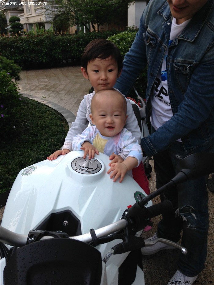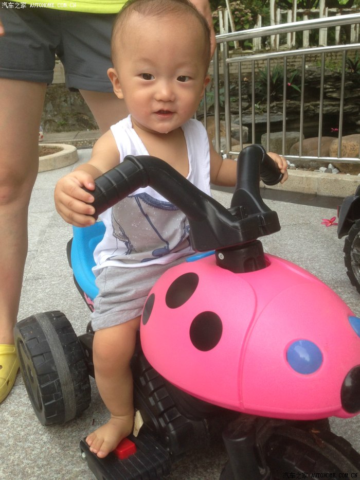 嘿嘿。儿子也骑电动摩托。很有样子呢。