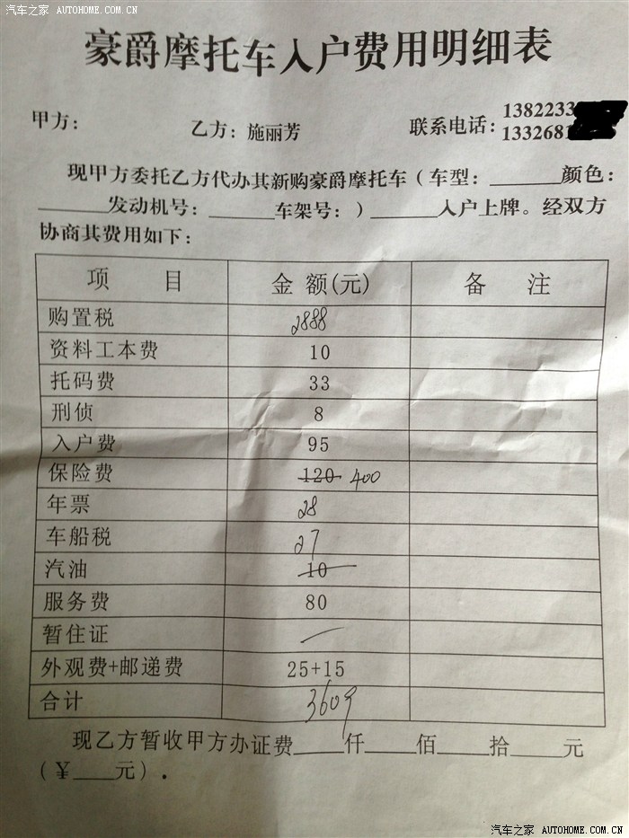 具体上牌的总和,因为本地户口所以不牵扯暂住证费用,自己开车过去不用交油费。就多了80元的帮忙上牌的手续费,价钱相当合理。如果有人需要来江门上牌可以PM我 我帮你联系这位物美价廉的上牌的。所以我最喜欢去豪爵哪里了。可惜黄龙不帮忙保养,不然我都想去豪爵售后保养了。