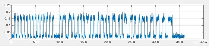 装好扫频软件,坐在后座上出发,一路上不停的扫频。胎压监测信号发射时间很短,转瞬即逝,我本来以为会很难抓到,实际上发现,还比较容易,特别是找到规律之后。上图中,红色圈里面就是胎压检测的发送信号。