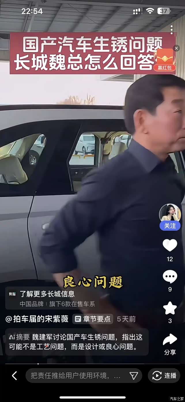 来过去,找老魏,他在说“车生锈都是厂家良心问题”你问他有良心不!