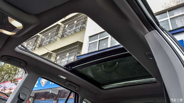 可开启式全景天窗,在同级别里少有对手,并且可以开启一半,不说换气与采光了,晚上拉着女朋友往山上一开,座椅一放倒,两人手拉着手一起看星星,昂,浪漫辽~