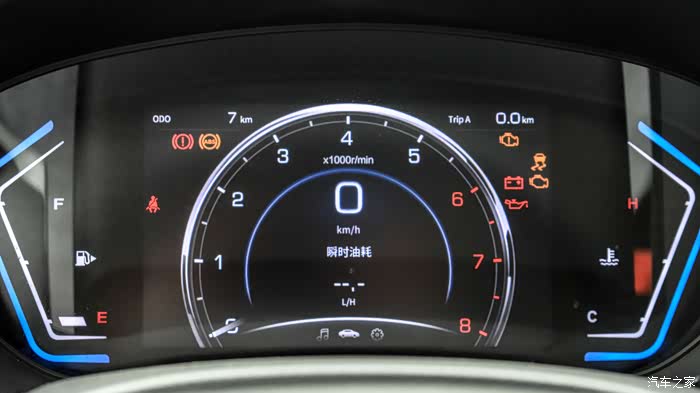 液晶显示仪表,左边是油表右边水温,中间的彩色液晶屏幕上能显示许多行车信息,基本满足日常驾驶需要
