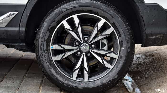 镜面抛光的17英寸双五幅铝合金轮毂,轮毂设计灵感源自于箭羽,215的轮胎使用的是佳通GitiComfort520系列,是一款价格不贵,偏重于静音舒适度经济型轮胎