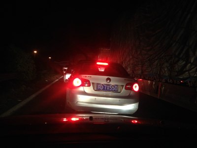 路上很顺利,直到父子岭收费站前面10公里左右,开始堵起了长龙,现在估计都是为了等到12点免费过收费站的车子排成了队。
