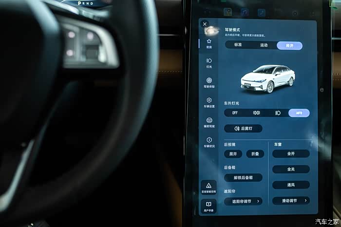 小鹏的前两款车型都采用了怀挡设计,P5也不例外。另外,自动巡航、NGP功能的开关也在这里,在条件适合的情况下,连续向下拉两次拨杆就能让车辆进入高等级的驾驶辅助状态,从而缓解驾驶疲劳。