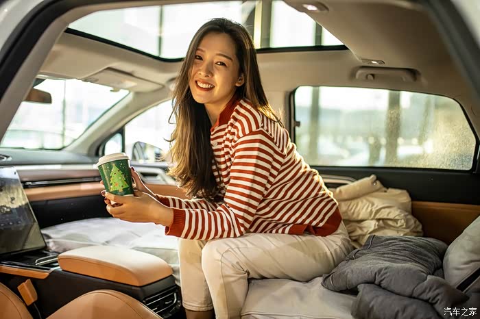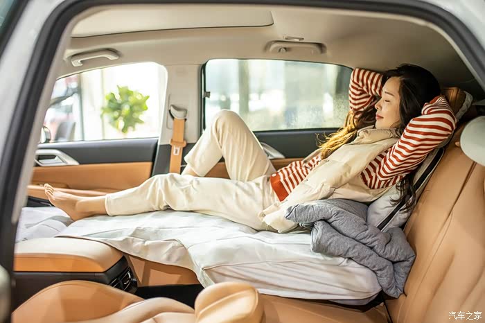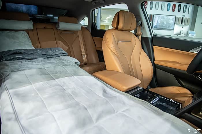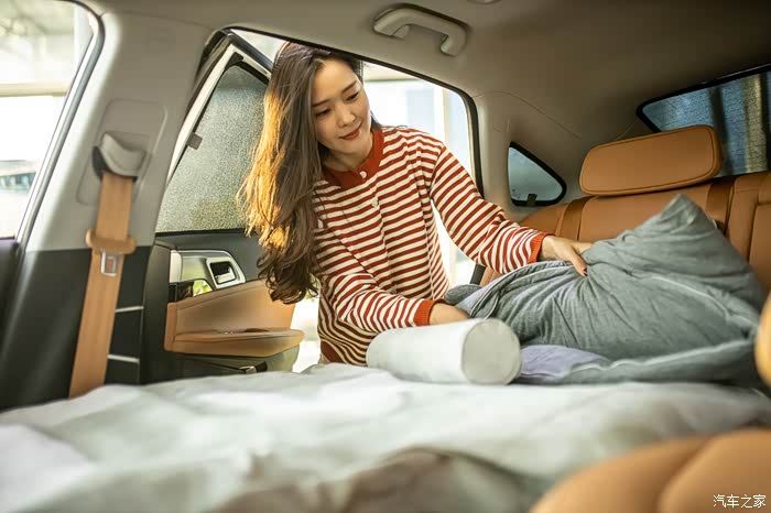 P5非常注重实用性,小鹏试图把它打造成为一款能够满足多种场景需求的车型。比如它的前排座椅可以完全放平,与后排座椅相连形成一张床。为了解决“这张床”凹凸不平的问题,小鹏还为其量身定制了充气床,并配有头枕、被子、收纳鞋袋、隐私窗帘等一系列睡眠套装,车机里还可以一键设置智能睡眠模式。这个睡垫真是方便,不用的时候就收回去,用的时候就放下来。