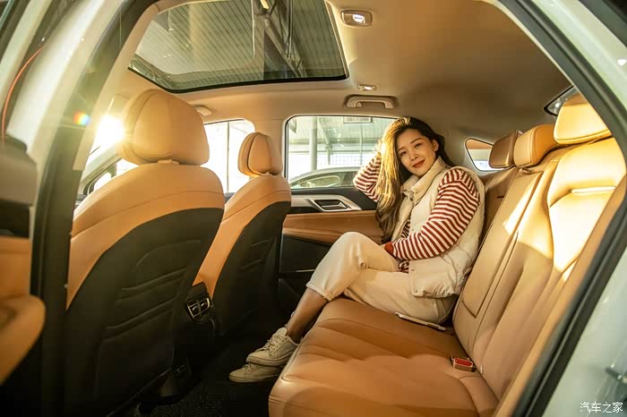 试了前排放倒躺平也是很舒适,腿也都能伸的开来。这车的细节做的很好,座椅和车门扶手皮质按钮很细腻,车内的五个座位均配备了加宽可翻折的航空头枕。在车内小憩时可以将头枕两侧翻起来,为头部提供更多的支撑,可以防止头部向一侧歪斜导致颈部受伤,作为一台这个价位的家用车来说真是非常合适的。