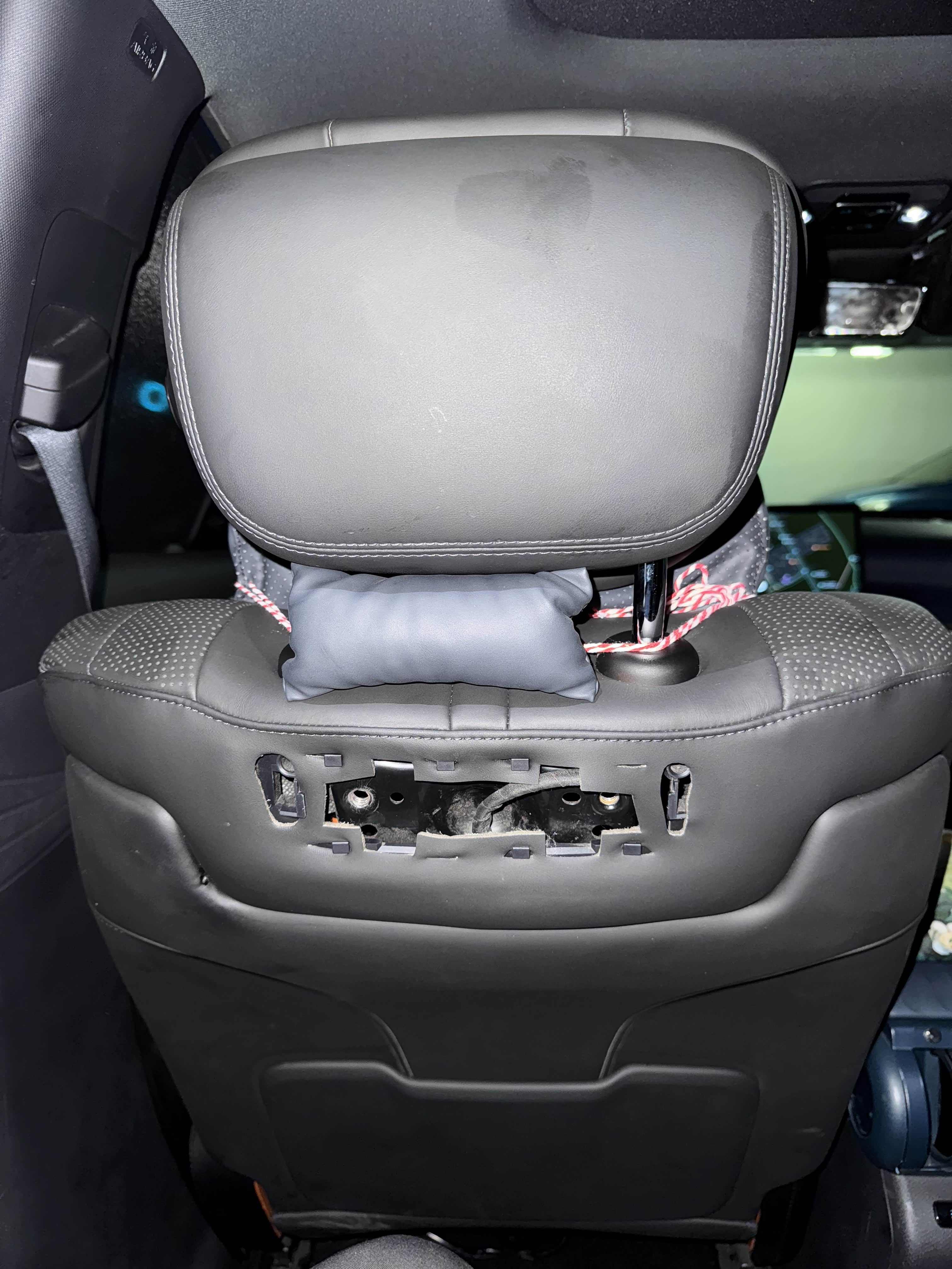 缺点2:原车座椅头枕后面有显示屏组件,拆了显示屏,没有盖板,空着,难看。改天再想办法遮掩一下。
