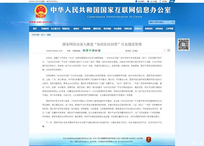 附录 - 《国家网信办深入推进“知识社区问答”行业规范管理》