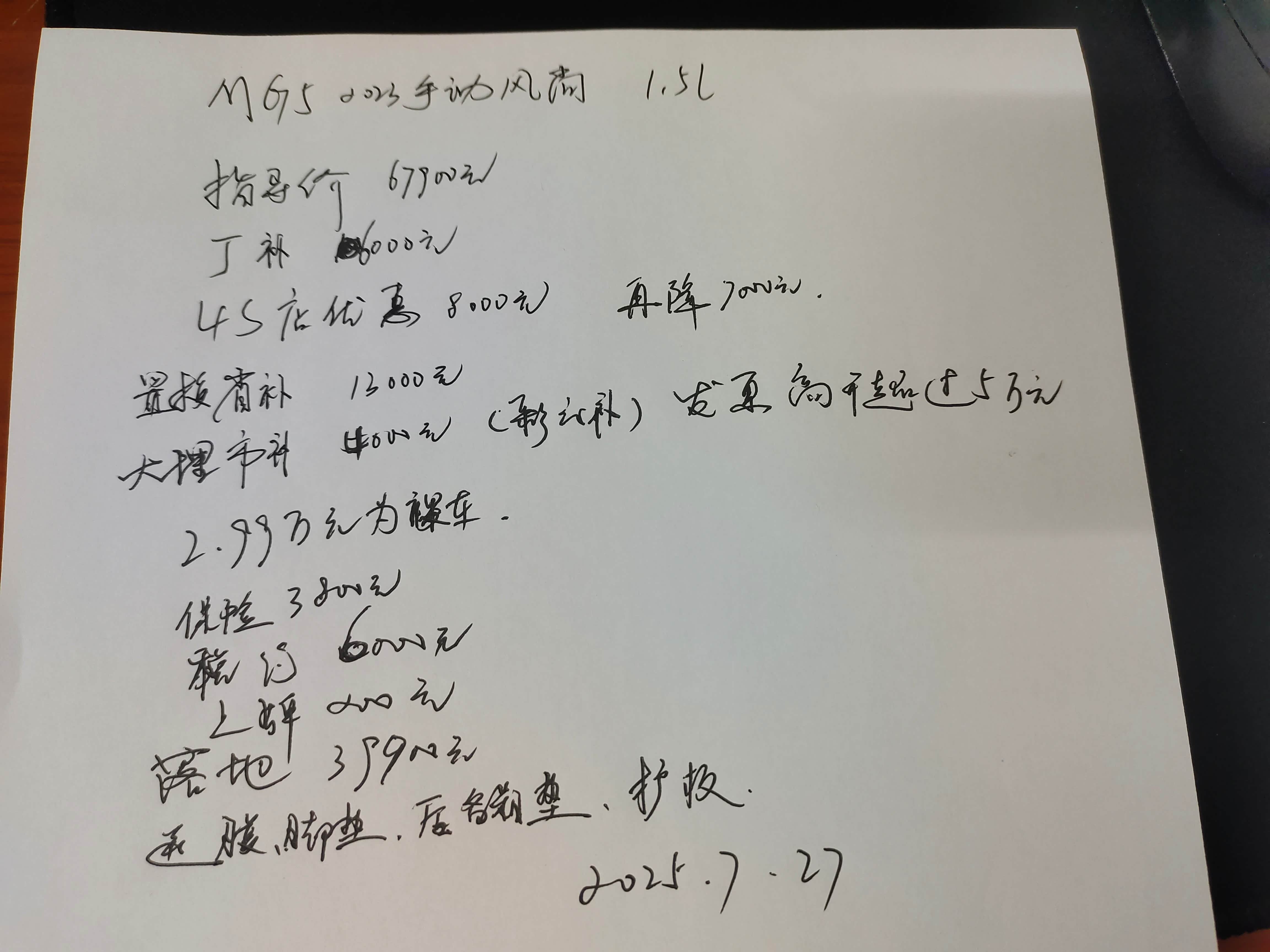 这个车的指导价是67900元,但是经过一系列的厂家优惠、终端清库存打折优惠和云南省补贴(置换13000)、大理州彩云补(可以领取4000元)后,裸车价到了2.99万。