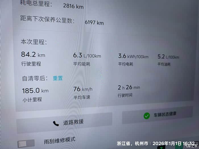 公元2026年1月1日,实测了俺的山海L7P.。导航地图显示99.98公里,去时油续航778公里,电152公里。上车前热了下车(方向盘、座椅开了一会就全关了,连空调都关)设定40%保电,整个行程基本高速,去时天气小雨,有个20公里车速70、80左右,就当走了国道吧。其余速度120+,超车时偶尔138。回来快到家时,想起拍照记录数据,才有下图。回程时没注意,变成智能保电,所以到家前后在19-21%之间。