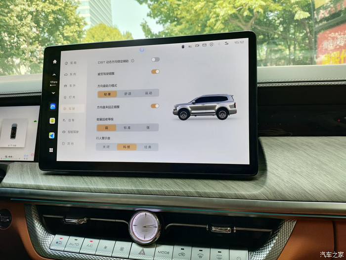 而从实际驾驶体验上来说,这车的操控难度很低,属于那种上手就能开的车。自带L2级辅助驾驶,360全景、底盘透视啥的都给安排到位,也就不存在什么视线盲区了。方向盘助力模式还能随时切换调整,我试驾时候主要用的轻便模式,阻尼很轻,过弯掉头的时候,调整方向一点不费力气。这车还有HUD抬头显示功能,显示效果非常清晰,直面阳光开都不受啥影响。车机系统的功能也很丰富,爱奇艺、QQ音乐啥的都能用,上面的导航功能还有红绿灯读秒,还真有点面面俱到的意思。