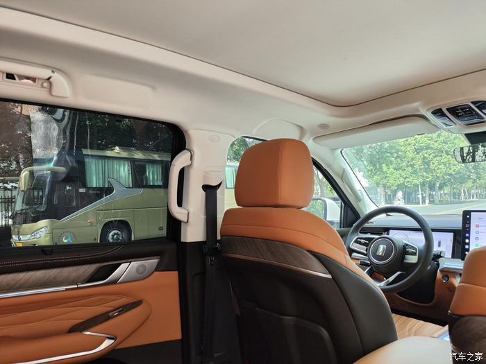 不过坦克500 Hi4-T的优势可不止于此,它的舒适性配置给得很全面,我这次来试驾坐在车里被惊艳到了。大面积的软皮包裹,全真皮的宽大座椅,还有前后扶手杯架和全车隔音玻璃等配置。而且这车的全车座椅都能实现通风加热以及按摩的功能,无论坐在前排还是后排,都能享受到高水准的乘车体验。中扶手和车门板区域的储物格也给设计了不少,空间也都蛮可观,随身琐碎物品不愁没地儿放。