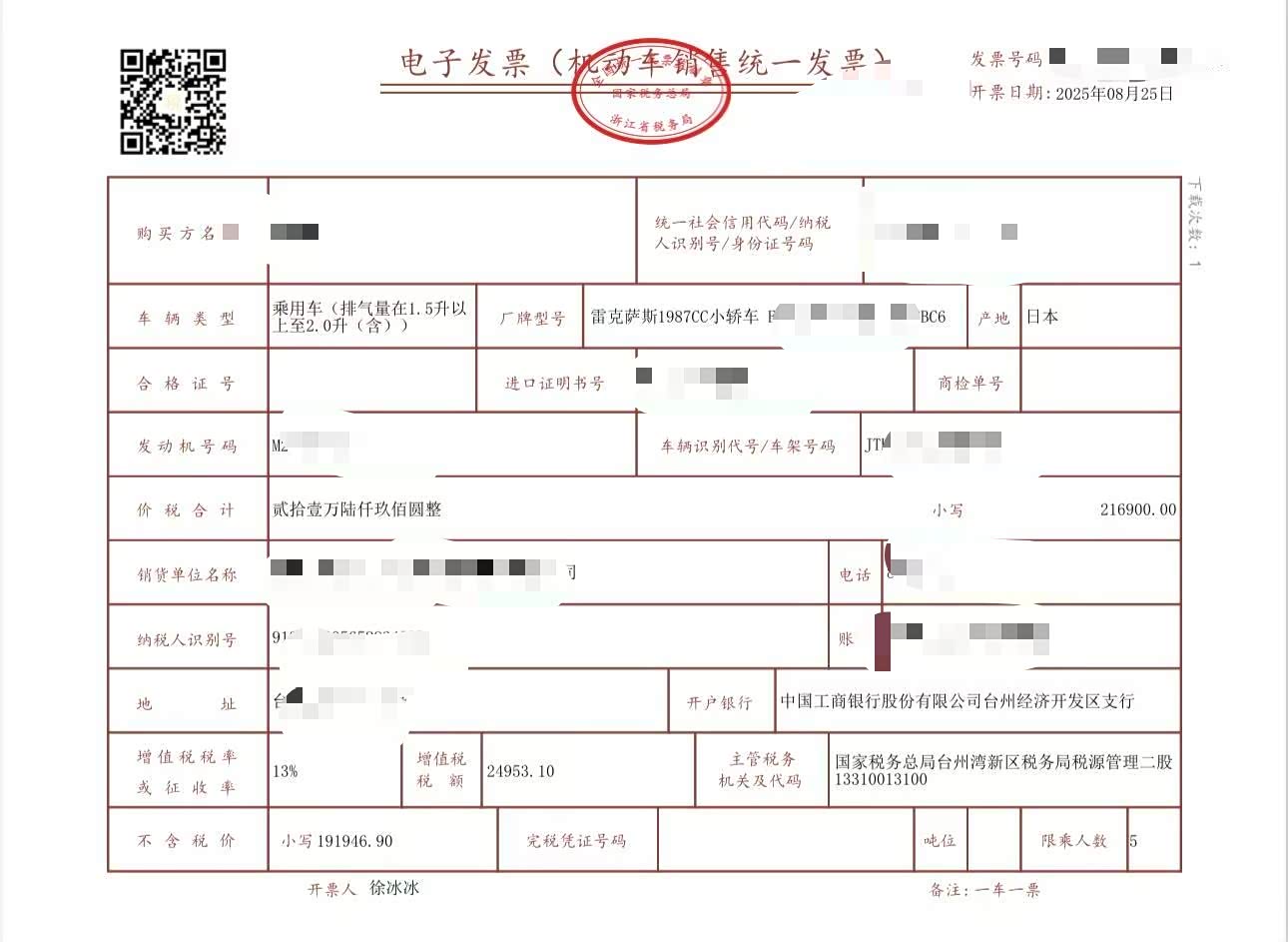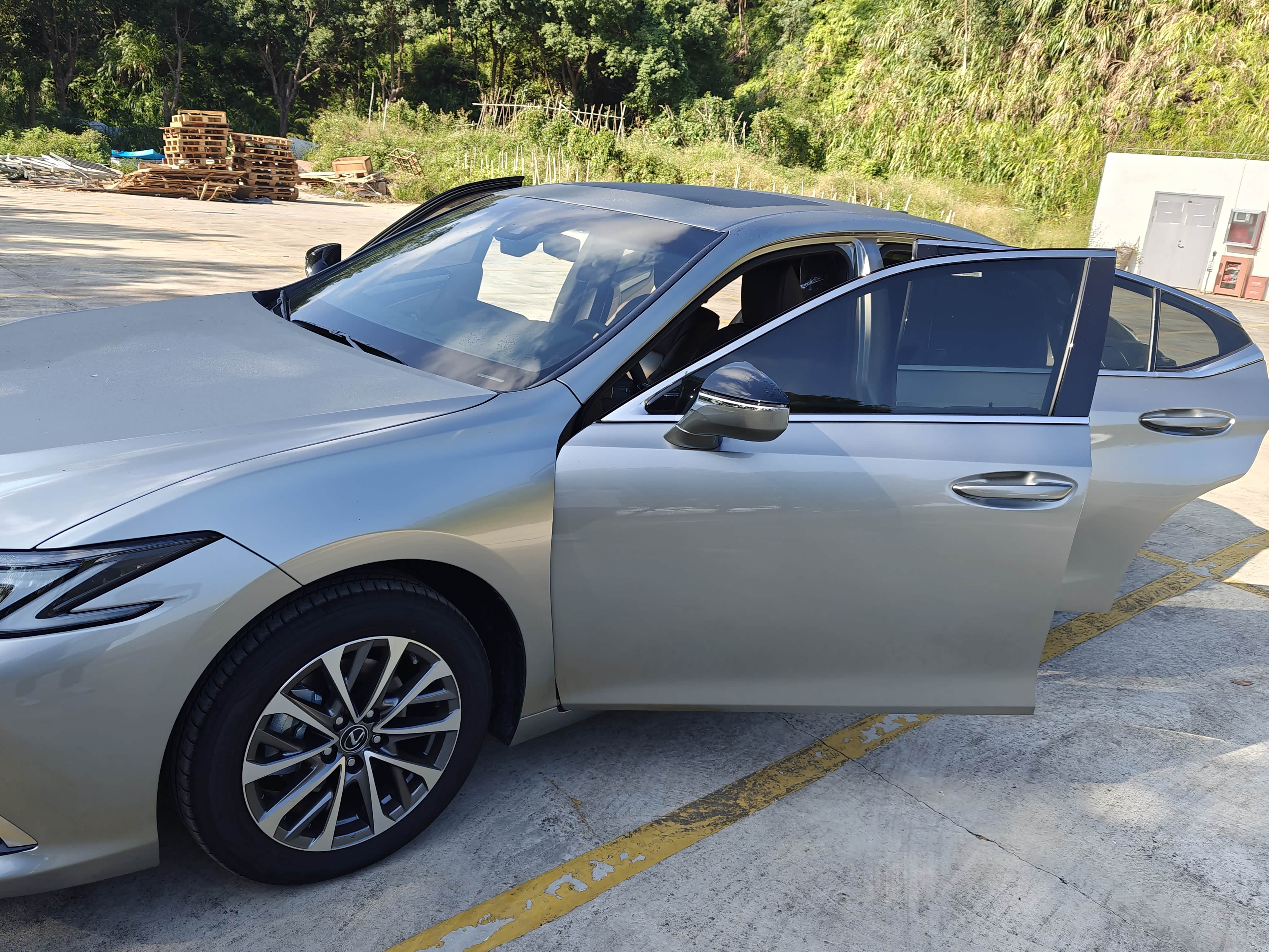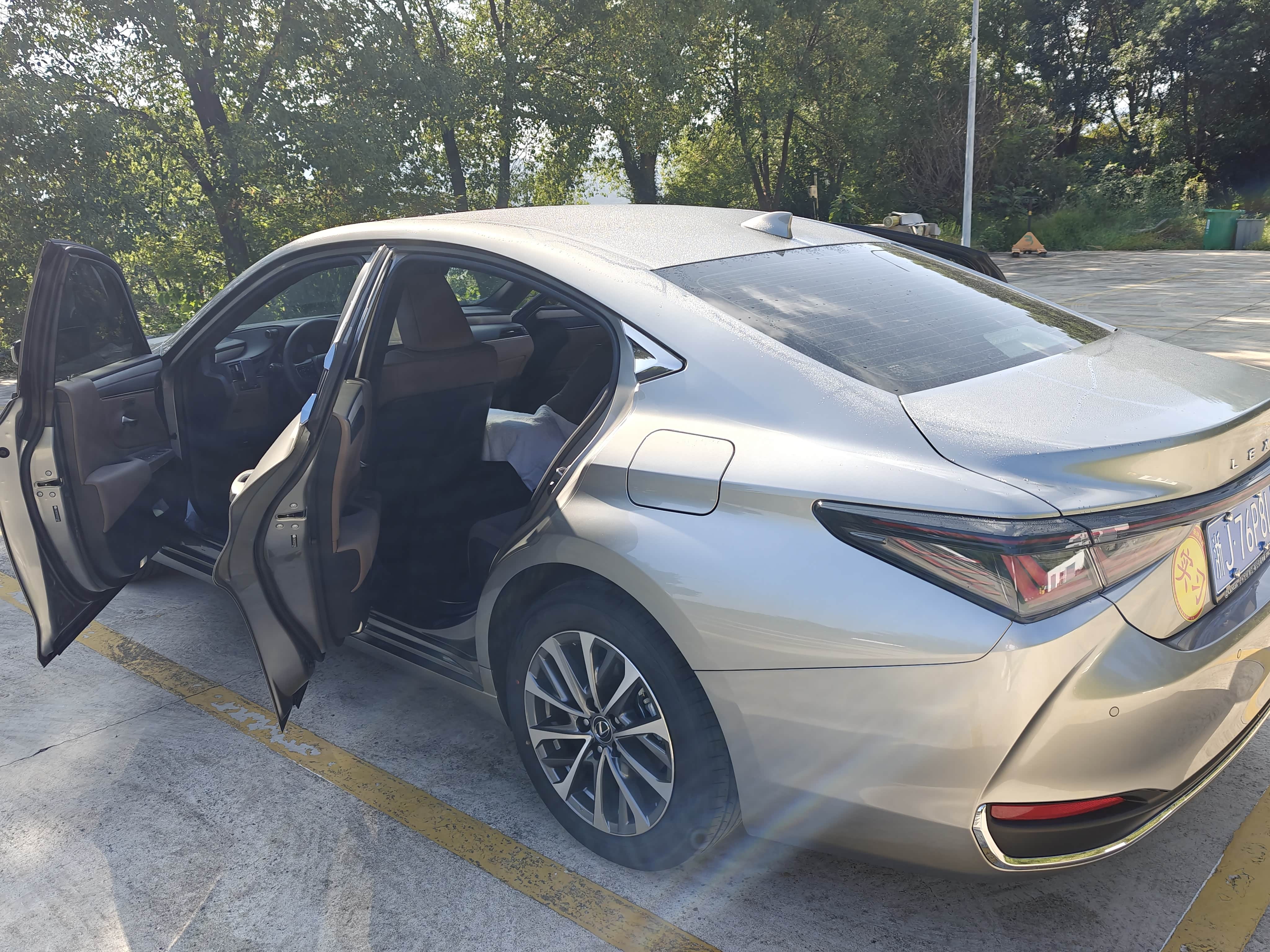 八月份挑了个周末去提的车。到那儿一看,我的银色ES已经洗得干干净净在等我了。我没着急进去签字,先围着车转了好几圈,用手摸摸漆面,看看有没有小划痕。看了看轮胎,四个都是一样的日期。玻璃和铭牌上的生产日期也对,是今年的新车。然后坐进去,把所有按钮都按了一遍,车窗、空调、大灯、音响,确认都没毛病。销售在旁边也挺耐心,一直给讲解。都检查完了,才去交钱办手续。最后他们给车系了个红丝带,送了束花,合了个影,感觉这服务还是挺到位的。