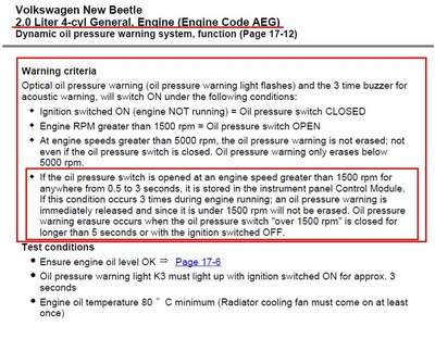 2. 如果上面情况连续出现3次, 机油警告灯就立即着, 这时就算转速低于1500转也会报警.