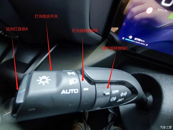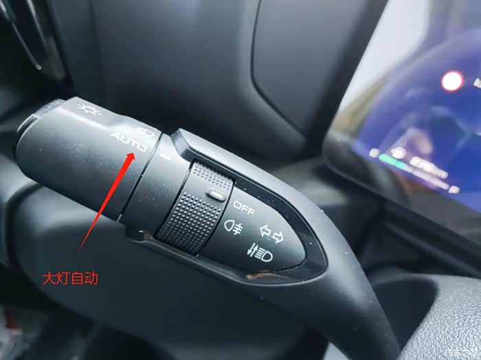 特别说明一下AUTO,它 代表大灯自动。旋转到此处,大灯会根据外部光线自动开启/关闭大灯,位置灯。熄火后也可以把灯光拨杆旋转到“AUTO”。它会自动熄灯。免去下车忘记关灯的烦恼。如果是晚上开车,它会自动开灯。