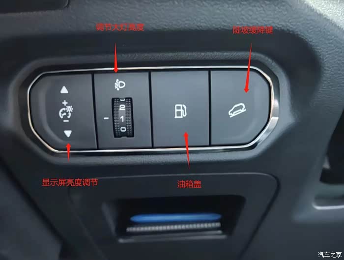 B:大灯高度调节开关。往上拨,大灯调高;反之,大灯调低。