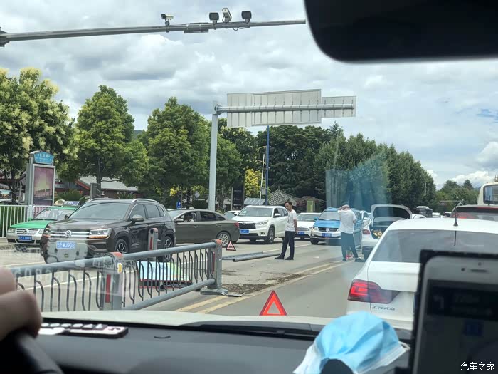 丽江古城等红绿灯时被追尾,被撞的时候我是N档手刹状态.....