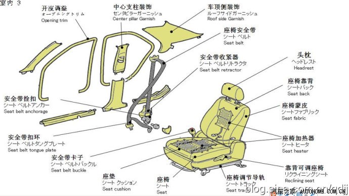 第二部分为汽车结构部件示意图。