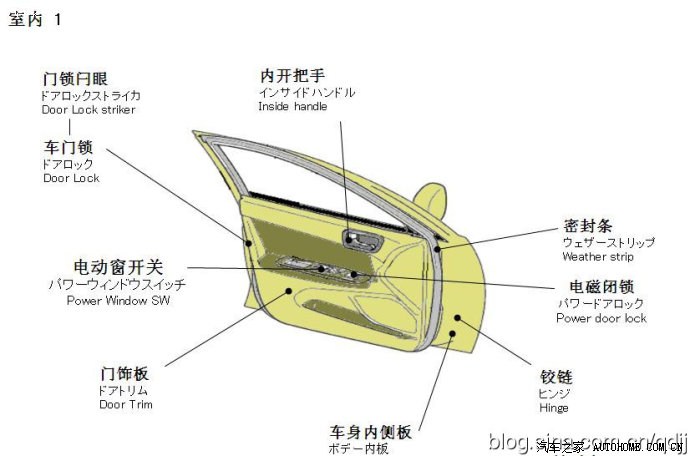 58、车辆后门从内部打不开:故障判定:假故障。原因分析:目前的轿车一般都在车辆的后门处安装有儿童锁,来防止乘坐在后座的孩童出于误操作使车门打开,出现安全事故。很多人在清洗车辆时由于不注意,搬动了儿童锁的手柄,出现乘坐在后座的乘员从内侧打不开门。这不是故障,只要从车辆外侧打开车门然后再把儿童锁的手柄搬到开的位置就可以了。