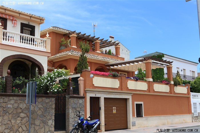 在路边喝咖啡时照的,好漂亮的房子,主人开的一辆途锐,有钱人啊。