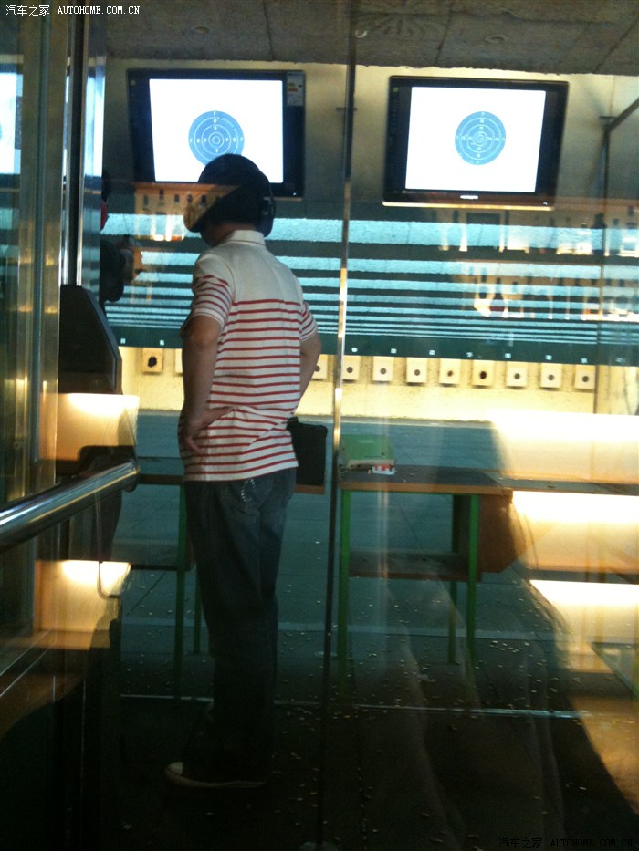 朋友说,走,进去开两枪。进了射击房,枪声震耳欲聋,赶紧找个耳机给自己戴上。瞧瞧本公子还象那么回事吧。
