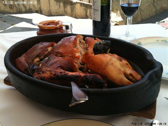 在塞戈维亚吃烤乳猪,我说我们也在吃烤乳猪,她惊诧地左右打量了一下饭店说没看到我们啊。原来她是在高架桥下的