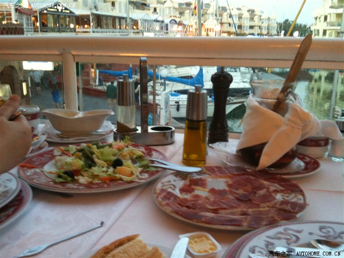 上点开胃菜,生火腿,好吃。快晚上十点了,光线有点暗,手机照的不好,虚了。