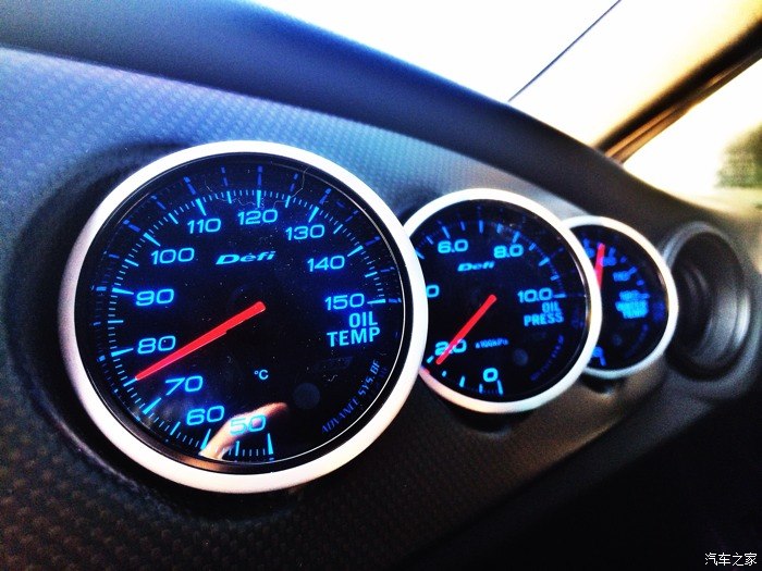 DIFI油温油压水温三联表,最重要的数据,马力做上去必须要时刻关注。消光碳纤维的表座设计的十分贴心。