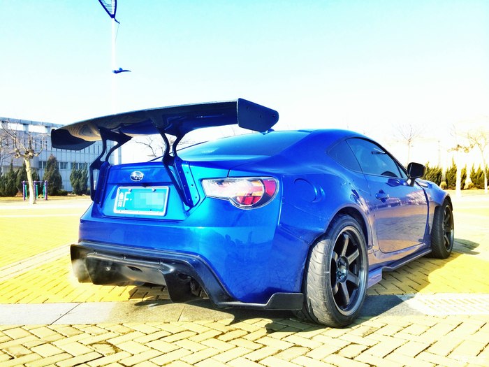 一代rocketbunny宽体全貌,各位相信已经看各种图片看的快要吐了。火遍全球86BRZ界的No.1 body kit,当时没有多少犹豫就选择了一代,二代的宽体不配风刀和头唇就是胖头鱼的造型,装上头唇和风刀的确霸气,但是实用性降低了不少。一代宽体上翘的前唇兼顾实用性和骚气配上JDM范十足的大尾翼让人无法拒绝,最终的效果也是很不错的。