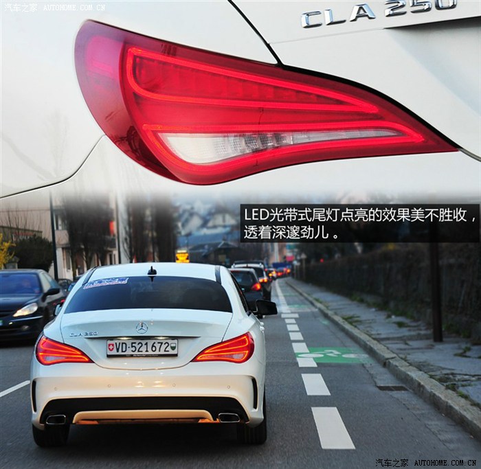 【外观及内饰方面】太漂亮了!诱人的曲线,虽然面孔与奔驰A级有诸多相似之处,但令人心动的地方是从B柱开始的,远看上去俨然就是缩小版的CLS级,尾灯造型犀利,整车线条非常流线,符合轿跑车的定位,而内饰则与奔驰A级一样,并没有什么区别。
