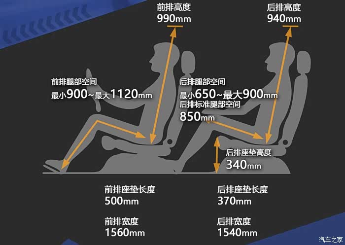 这是之家的图片,重点看后排坐垫长度,对于一辆体积不小的车子,怎么才370mm,印象里一般像Q5、X3之类的后排坐垫都在450mm以上,桥车除非紧凑型,小于400mm的也不多吧。合适的坐垫长度对于大腿承托很重要,否则坐的时间久了容易疲劳。
