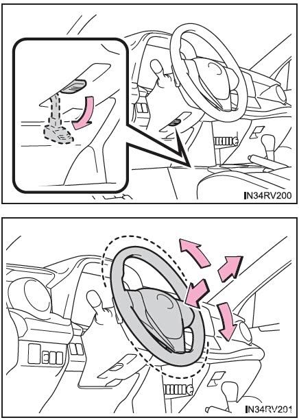 2. 沿水平方向和垂直方向移动方向盘,将其调节至理想位置。调节后,向上拉操纵杆以固定方向盘。