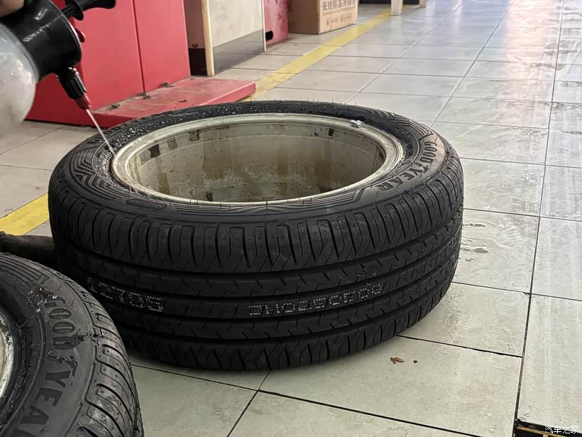 做完动平衡后,再在轮胎两面轮胎与轮毂接触的凹槽内喷上水,检查密合状况,看看有没有漏气。