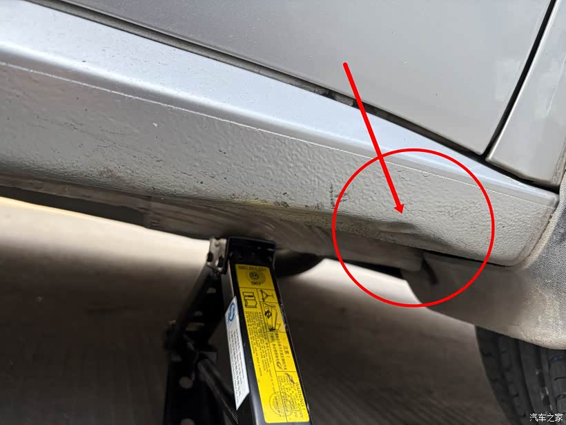 打到车身下方有圆形凹点的地方就是放千斤顶的地方,如上图标识。