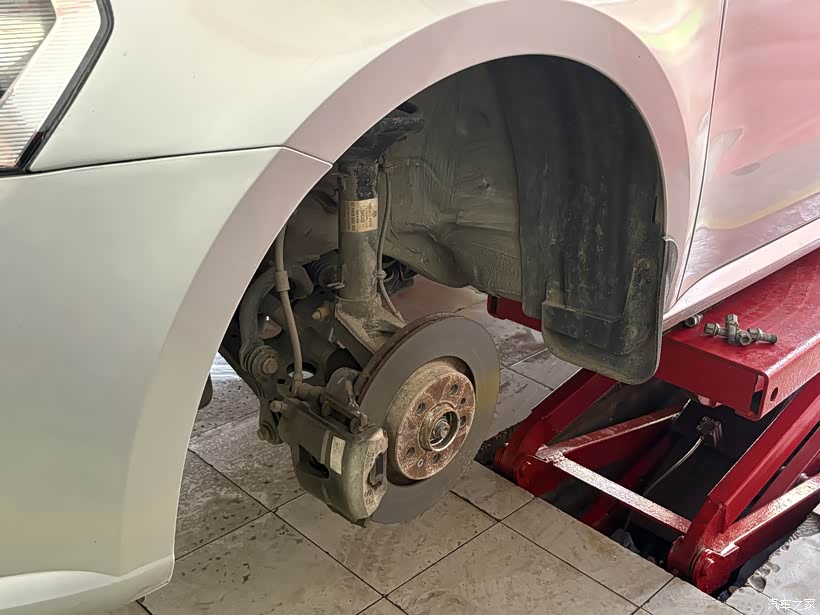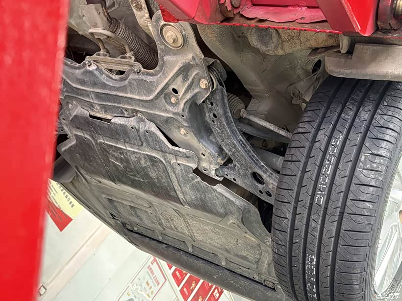 这次爆胎是因为蹭到马路牙子导致的,担心有磕碰到底盘,换完轮胎再将车子升起来检查一下底盘。