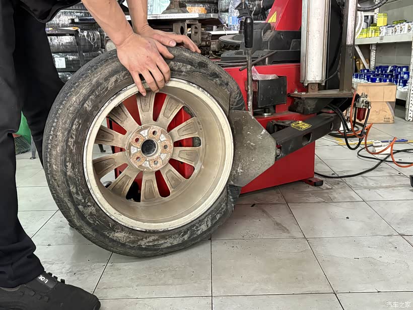 从轮毂上取下旧轮胎,这个过程看起来会有点暴力。