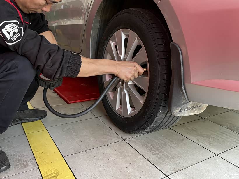 再次确认四个轮胎的胎压,全部统一加到2.5。