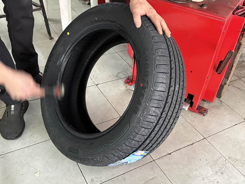新轮胎,安装前在轮胎与轮毂接触面上刷上油,让轮胎壁与轮毂壁能够充分接触并密合。
