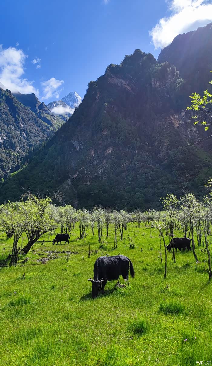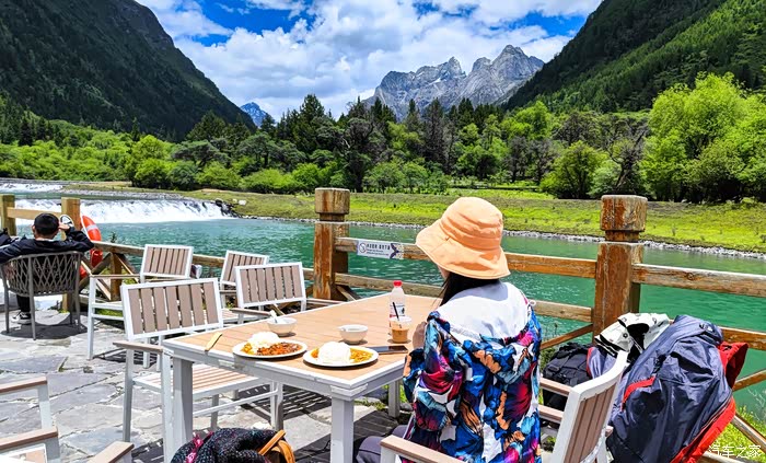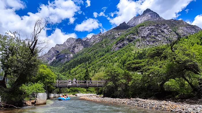 最后一个惊喜,是在撵鱼坝的高山漂流给我的,没错,现在四姑娘山双桥沟有漂流了,恰好夏天是丰水期,所以漂流能够顺利进行。漂流不太急,但是全程也不用划水,只需要胎在漂流艇里,抬头欣赏风景就好,全长4.5公里的漂流绝对是本次双桥沟最大的惊喜,毫不夸张地说,这是我玩过的最漂亮的漂流,没有之一。单人票价90,小贵,但是带来的欢愉感,绝对超过90元。漂亮不会把身上打湿,但是可能会把你晒伤,所以一定做好防晒,运气好,还会和牦牛来一次亲密接触哟。