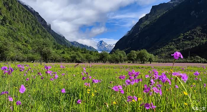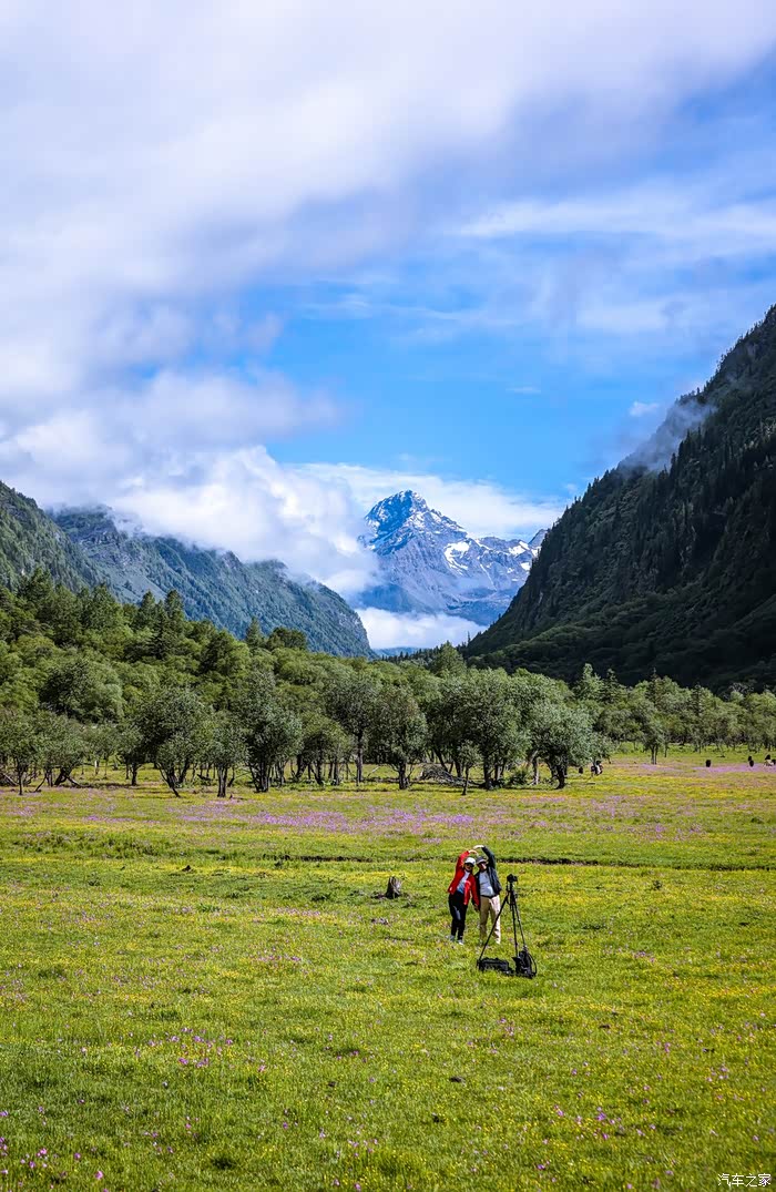 加上这次进双桥沟,我已经是第三次来到双桥沟了,前两次都是秋天,诚然秋天的双桥沟美得如同油画般,夏天的双桥沟如同上天打翻的调色板,天是蓝色的,云是白色的,草原是绿色的,花有紫色的,黄色的,红色的,还有黑色,白色,棕色的牛羊星星点点的落在草原上,碧绿的海子,加上雪山的加持,我想所谓的人间天堂也就如双桥沟这般景色吧。