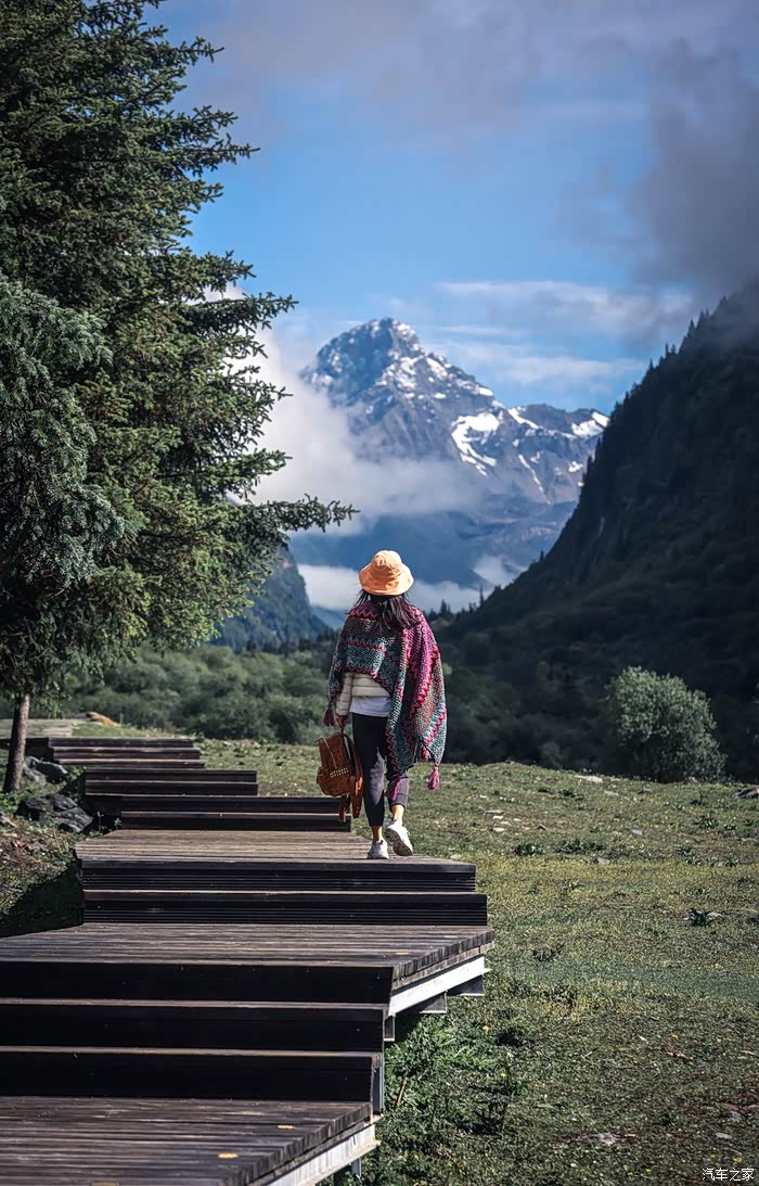 随后乘车到达最高点,红杉林最大震撼就是当你站在雪山脚下的时候,数座五千米以上的雪山在你面前的时候,你会觉得一种感觉叫震撼,这种压迫感当然跟高海拔也有关系,毕竟3840了。红杉林倒是人满为患,不想扎堆,所以我们打个卡就往下走了,因为我知道,要想看雪山的全貌,必须离雪山远一点,所以下面的360雪山观景台才是最美观景台。