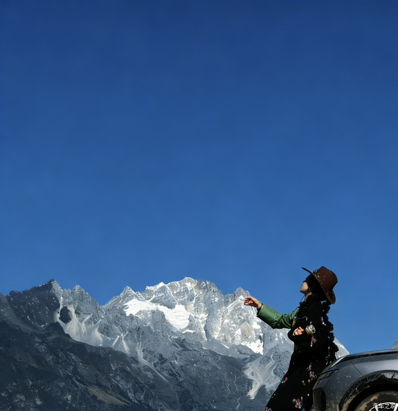把车停在雪山下的空地上,我靠在08的车头,抬头就是直插云霄的玉龙雪山。蓝天像被洗过一样干净,雪山的棱角在阳光里闪着白晃晃的光,风从耳边吹过,带着点雪山的清冽,却一点都不觉得冷,毕竟刚从暖烘烘的车里出来,身上还带着余温。