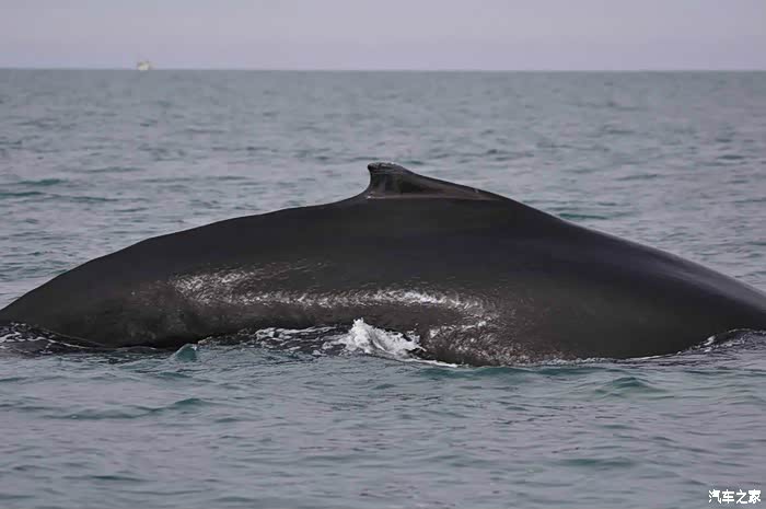 座头鲸的大脊背。座头鲸的英文是Humpback,驼背的意思,我想可能是因为它的背部的弯曲度可以很高的原因吧?对比此照片吧。