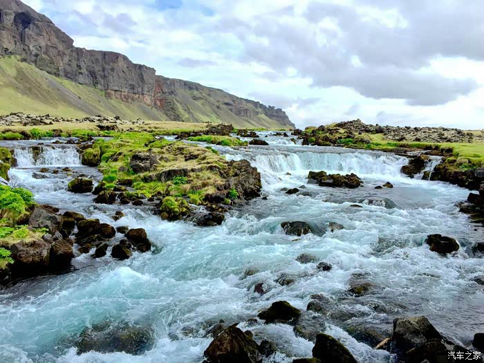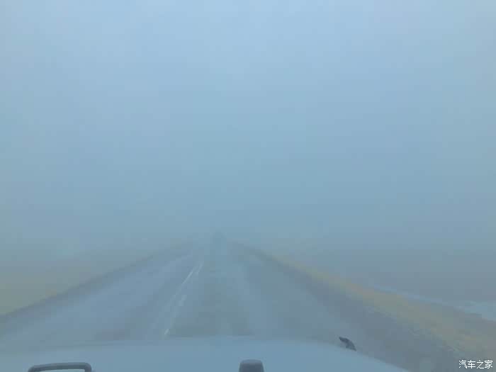 第六天6月7日,今天最终的目的地是冰岛第二大城市阿克雷里,今天沿途安美景密集,所以我们一大早就出发了。不知是由于清晨水汽大还是别的原因,一进山就遇上了大雾,我们在迷雾中艰难前行,能见度降到5-10米,行车基本为龟速。这张白乎乎的照片记录下了当时的情况,这张照片就叫“云中漫步”吧。