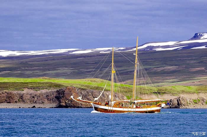 漂亮的传统木质观鲸船,搭配着雪山草垫非常具有冰岛范儿!这种小帆船的速度和机动性都比冲锋舟差很多,感觉选择这种船出海观鲸的人,更倾向于观景吧。