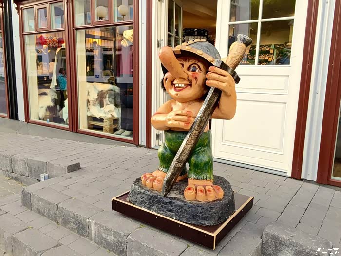 照片拍自阿克雷里的商业街,这条街应该是这座城市最繁华的地段了,但却显得比我们天朝一条胡同还冷清。我觉得这张照片充分体现了冰岛的人文状况:大街上很少见到闲逛的人、建筑物的上艺术气质的绘画、还有妖魔化的维京人人偶。